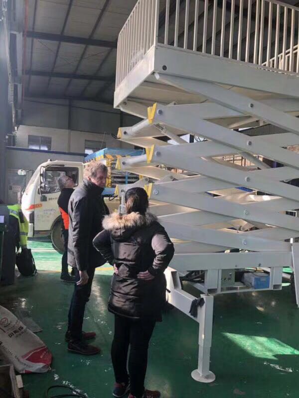 推薦產(chǎn)品 移動(dòng)剪叉式升降平臺(tái)發(fā)貨調(diào)試現(xiàn)場(chǎng) 車載式升降機(jī)從廣東發(fā)出 廣東升降平臺(tái)倉(cāng)庫(kù) 出口產(chǎn)品,國(guó)外客戶來(lái)廠驗(yàn)貨